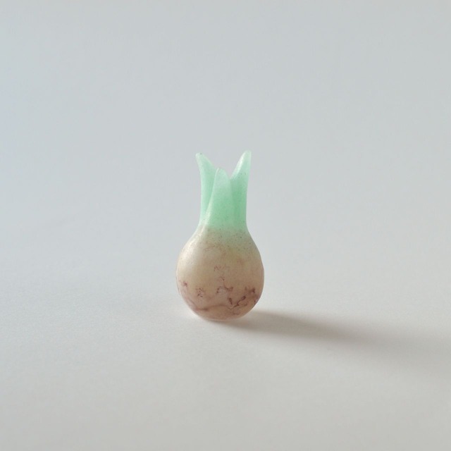 球根の形の面白さ、愛らしさに惹かれて制作しました。 いびつな形やムラのある色など、自然な雰囲気が出るように心がけました。 ひとつでも、いくつか並べても、どちらも可愛いです。 木箱に入れてお届けします。 size/約 H 4 W 2.7 D 2.7(cm) material/ガラス attention/光の透過等の影響で、作品の色味や色の濃さなど、写真と実物では見え方や印象が異なる場合があります。予めご了承ください。 作品の底部に直径6mmほどのへこみがあります。(写真3枚目参照)通常、見えない部分にはなりますが、予めご了承の上、お求めください。 制作について/ 原型を作り、それを耐火石膏で型取り、中に粉状にしたガラスを詰めて、電気炉で焼成することでガラスを溶かして造形する、パート・ド・ヴェールという技法を用いています。