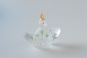ガラスの色がきれいに見えるよう、アイボリー色の漆塗りの台をセットにしました。