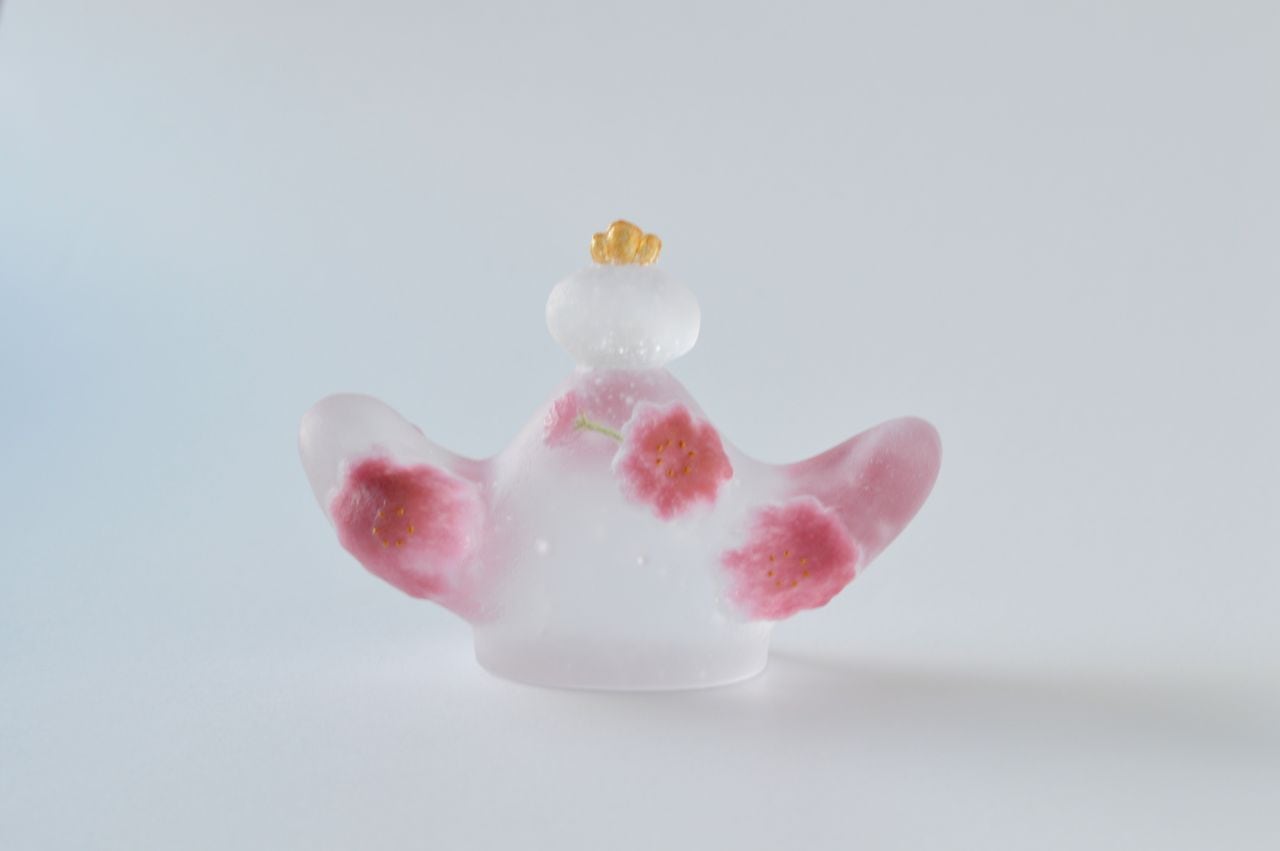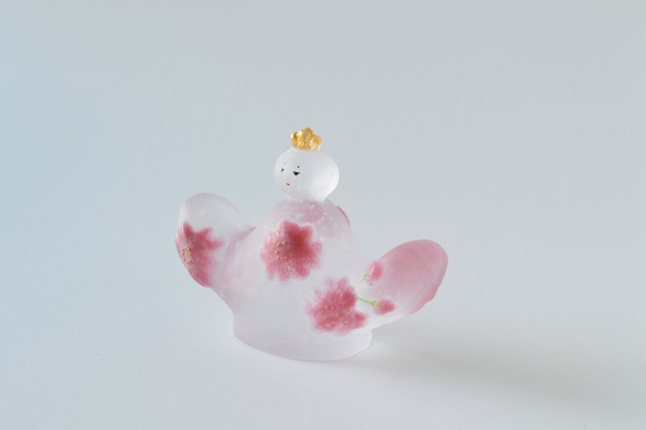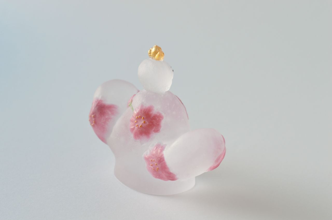 女雛の袖の裏側に気泡による穴が開いている箇所がありますが、技法の特性によるもので、不良品ではないと判断しております。予めご了承下さい。