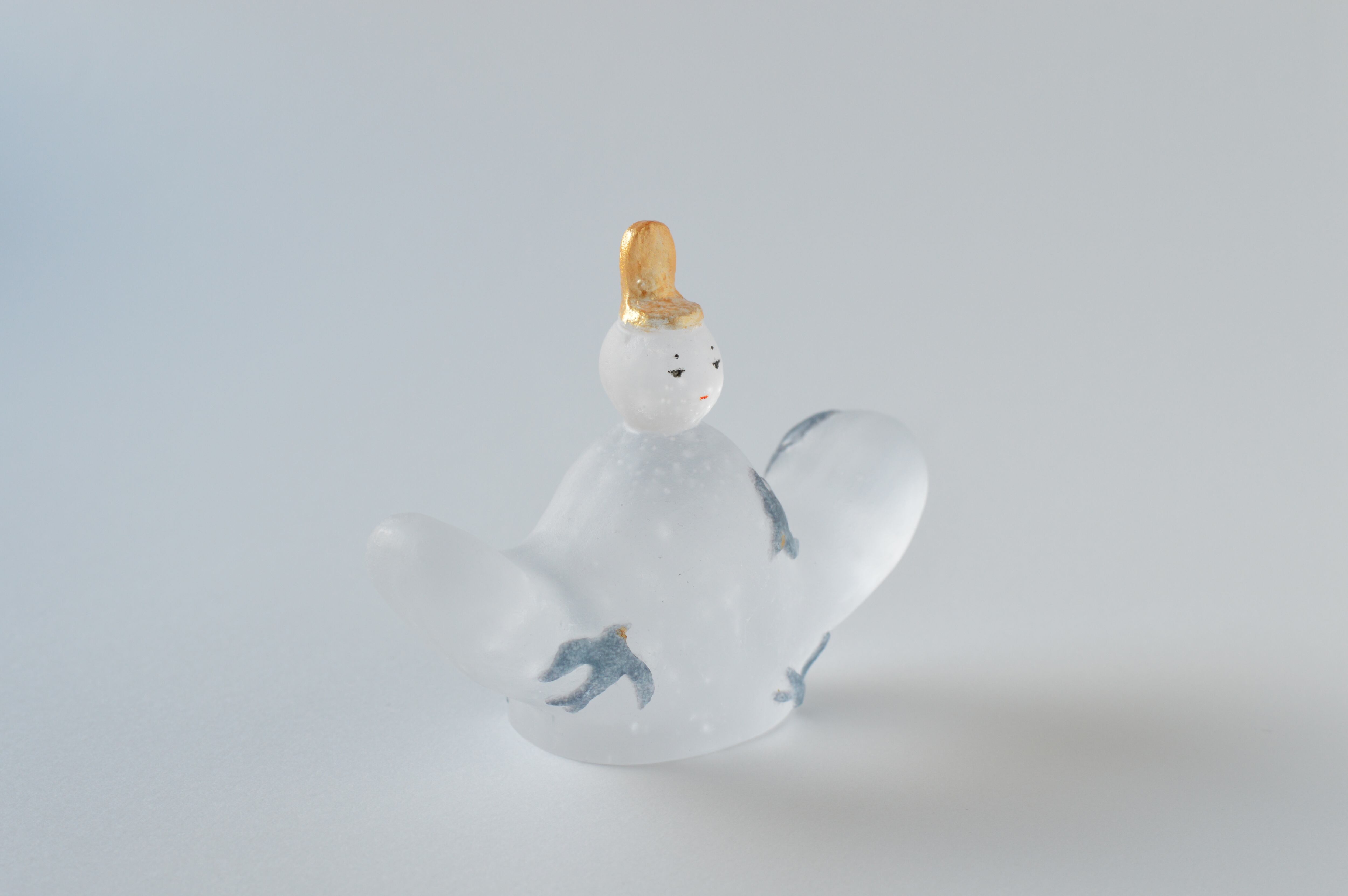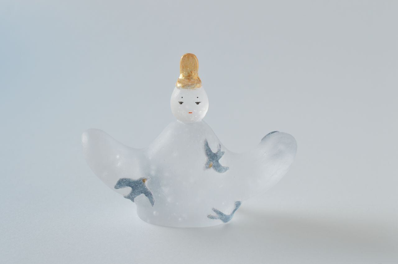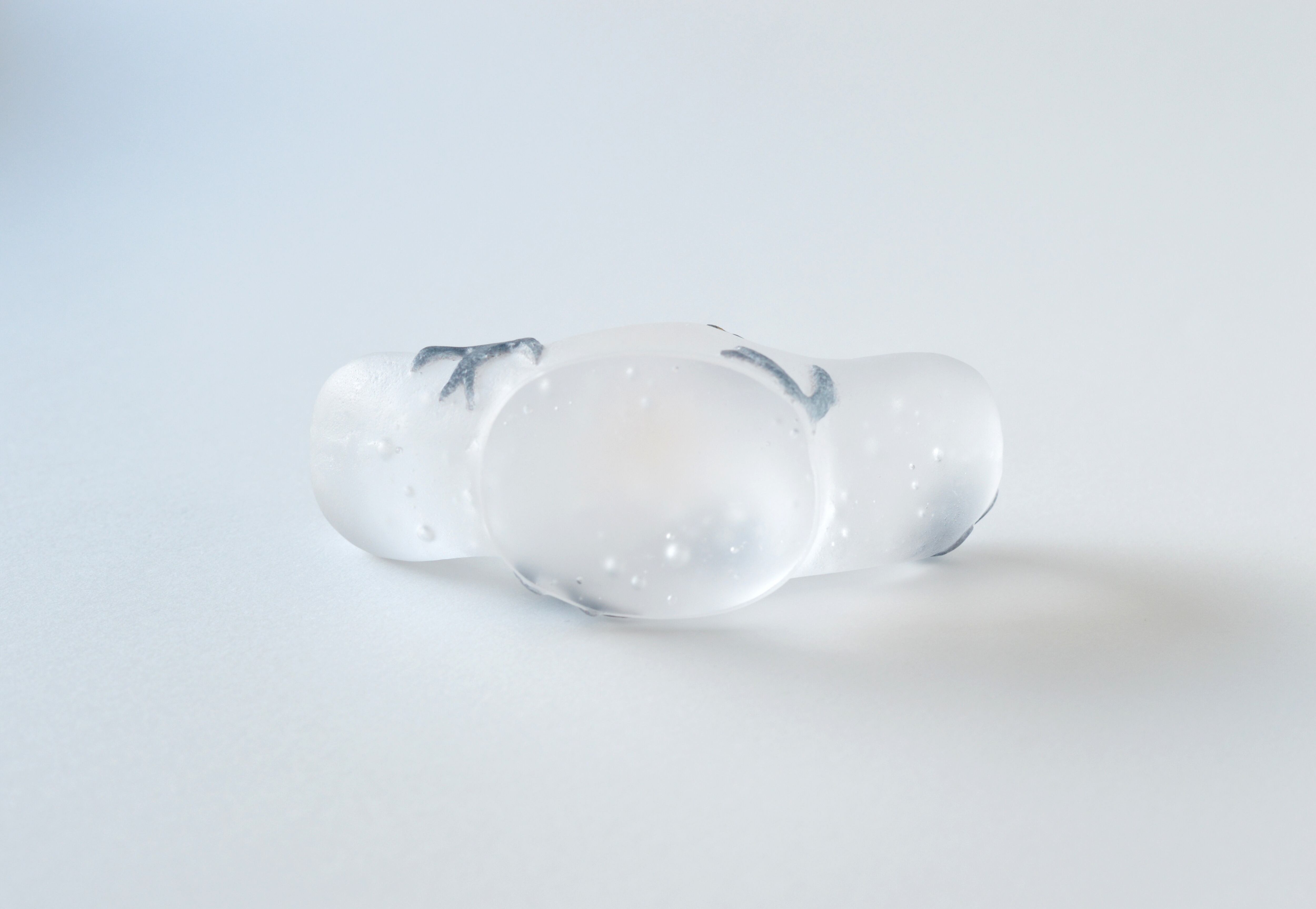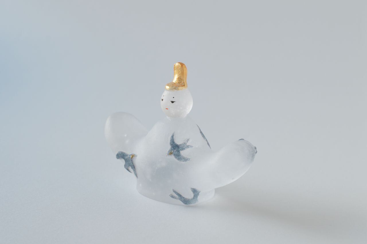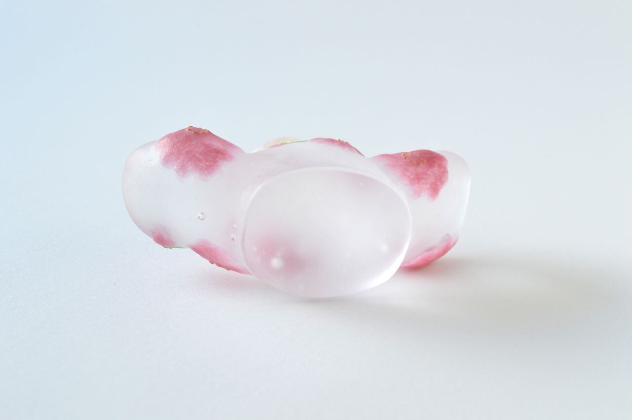 原型を作り、それを耐火石膏で型取り、中に砕いたガラスを詰めて、電気炉で焼成することでガラスを溶かして造形する、キルンキャストという技法を用いています。