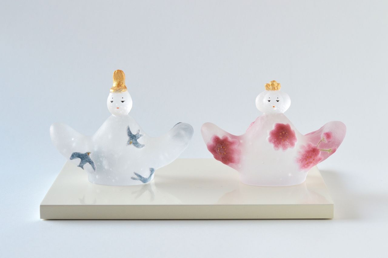 男雛にはつばめが舞う様子、女雛には桜の花をイメージした模様を入れました。