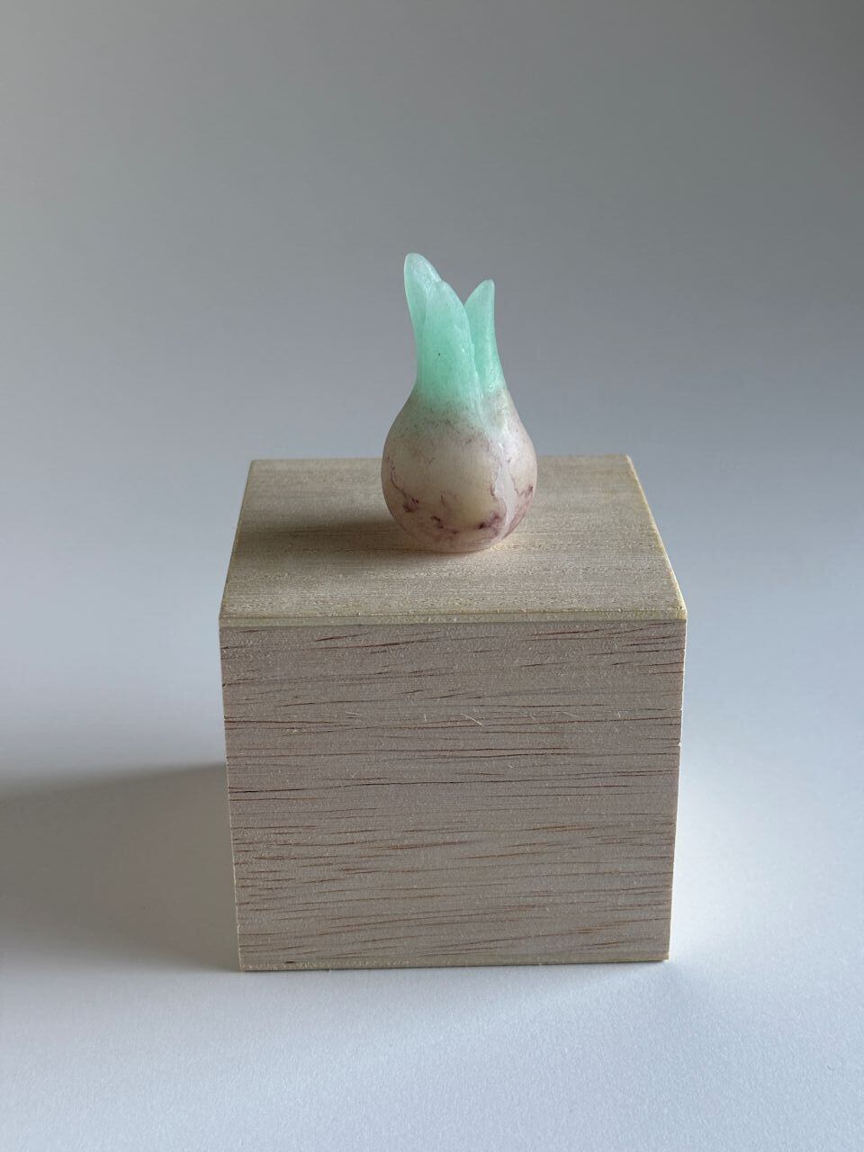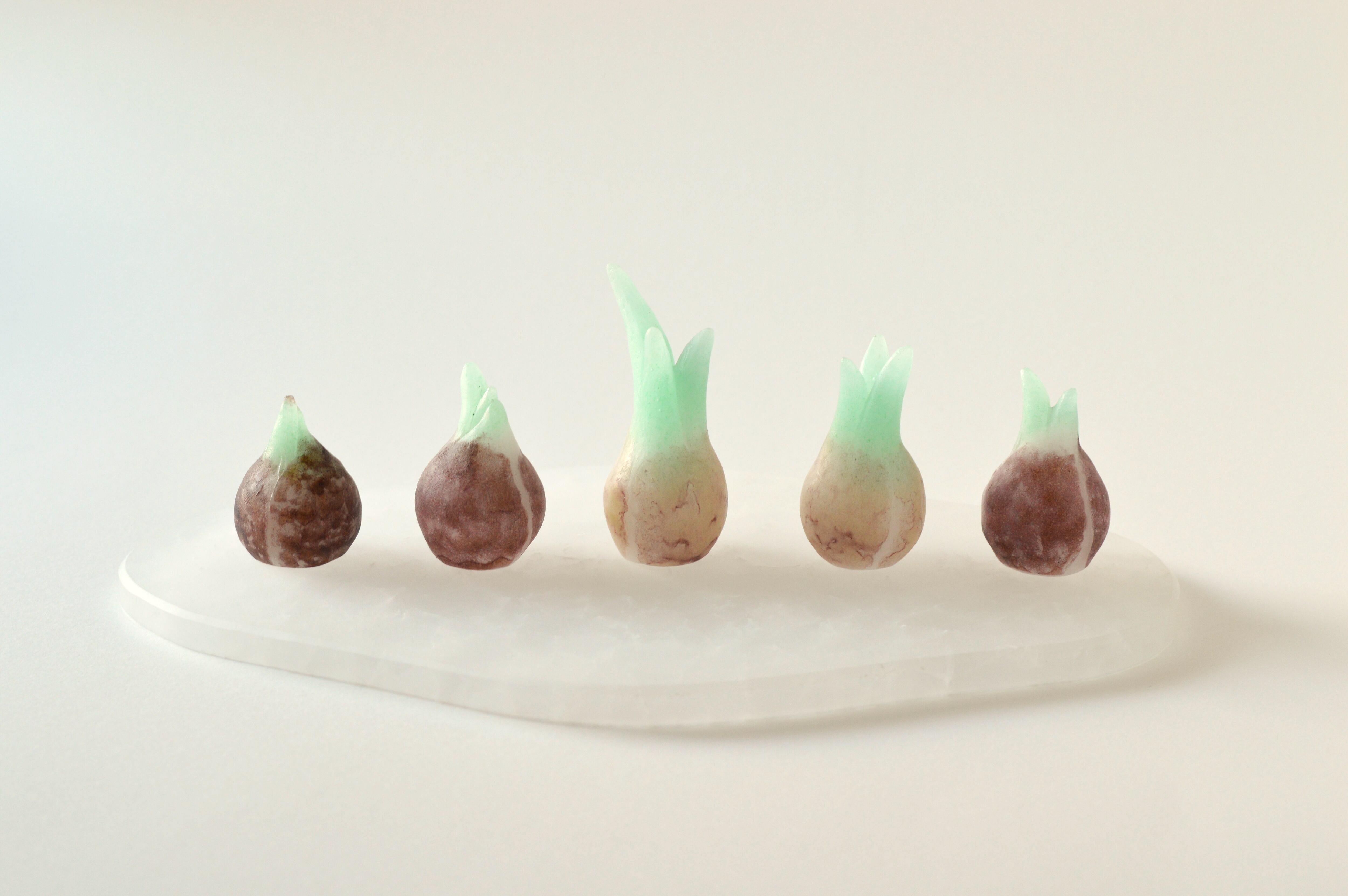 球根の形の面白さ、愛らしさに惹かれて制作しました。