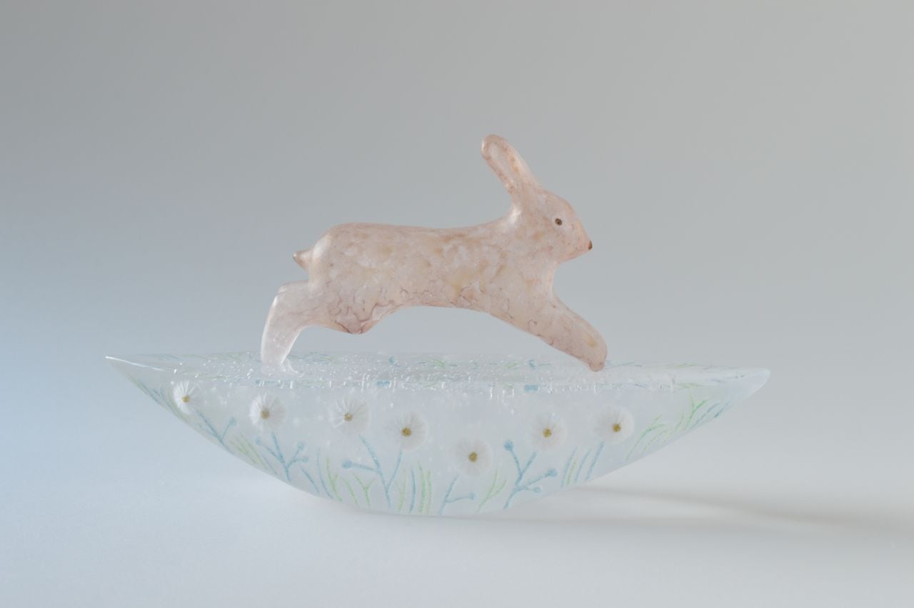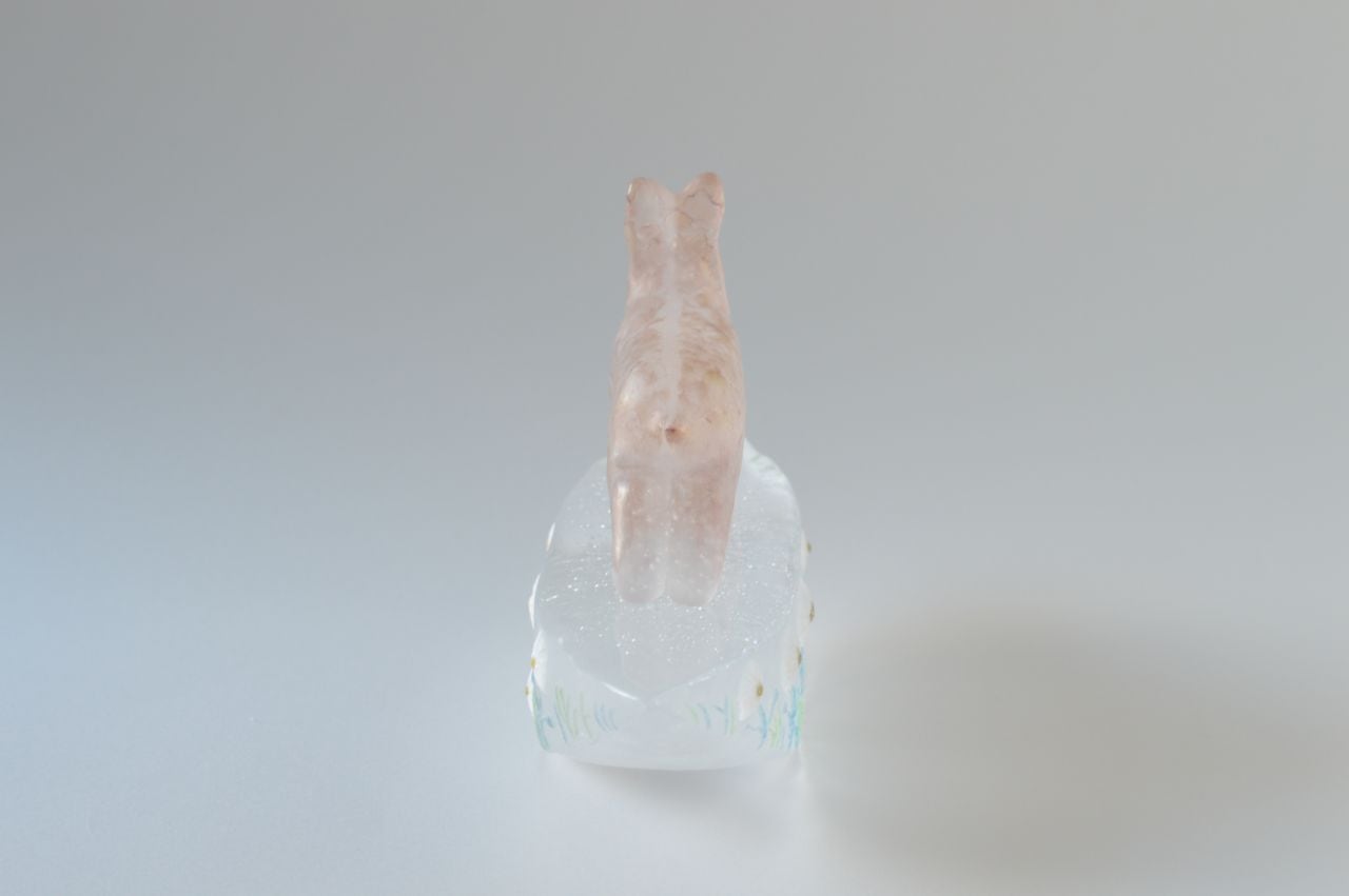 原型を作り、それを耐火石膏で型取り、中に砕いたガラスを詰めて、電気炉で焼成することでガラスを溶かして造形する、キルンキャストという技法を用いています。