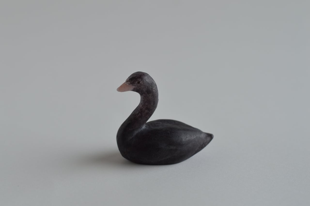 小さな黒鳥のオブジェ。