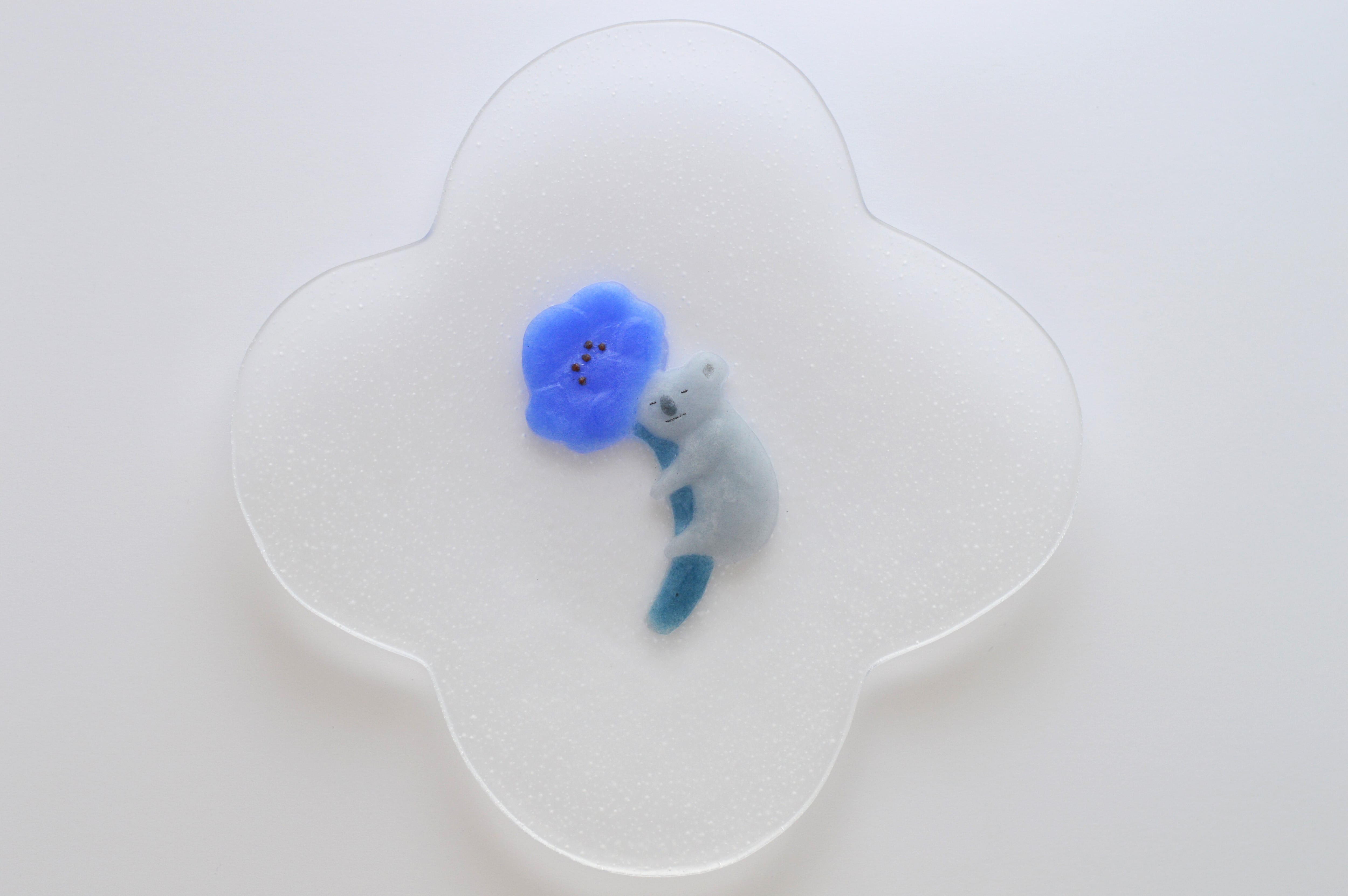 眠るコアラの様子に惹かれて、ガラスの絵皿を制作しました。